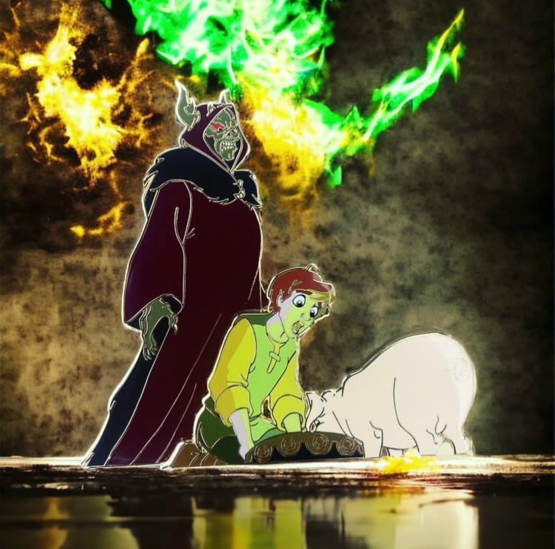 Fan art collectible pin inspired by Black Cauldron. This is the Scrying Sorcerer. It’s the second pin in my Cast in the Shadows pin series.